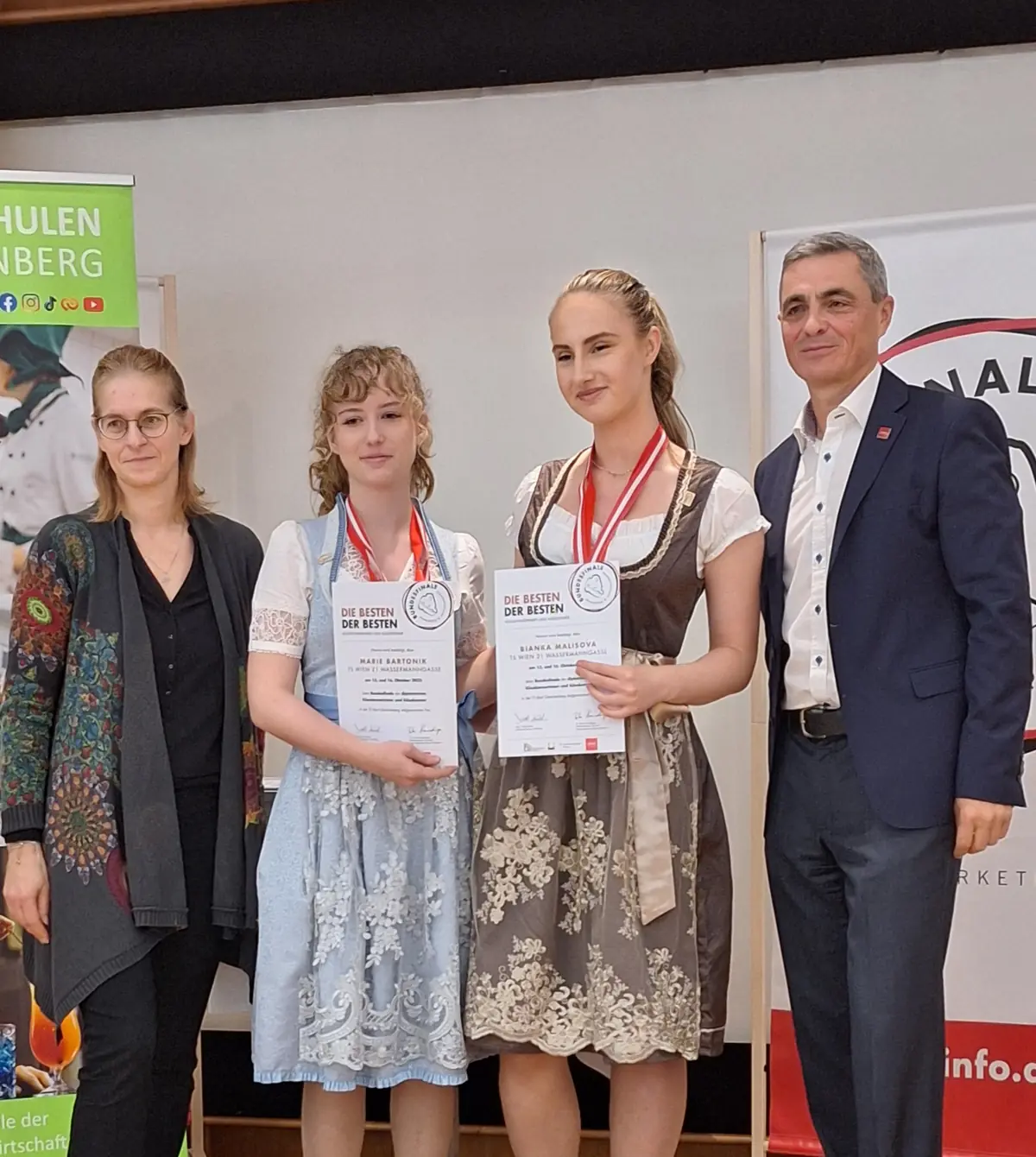 Dieses Jahr war die Wassermanngasse wieder bei dem jährlich stattfindenden Wettbewerb „Bundesfinale der diplomierten Käsekennerinnen und Käsekenner 2025“ in den Tourismusschulen Bad Gleichenberg vertreten.Marie Bartonik (4HTAB) und Bianka Malisova (4HTC), die Ihre Käsekennerausbildung bereits im Mai